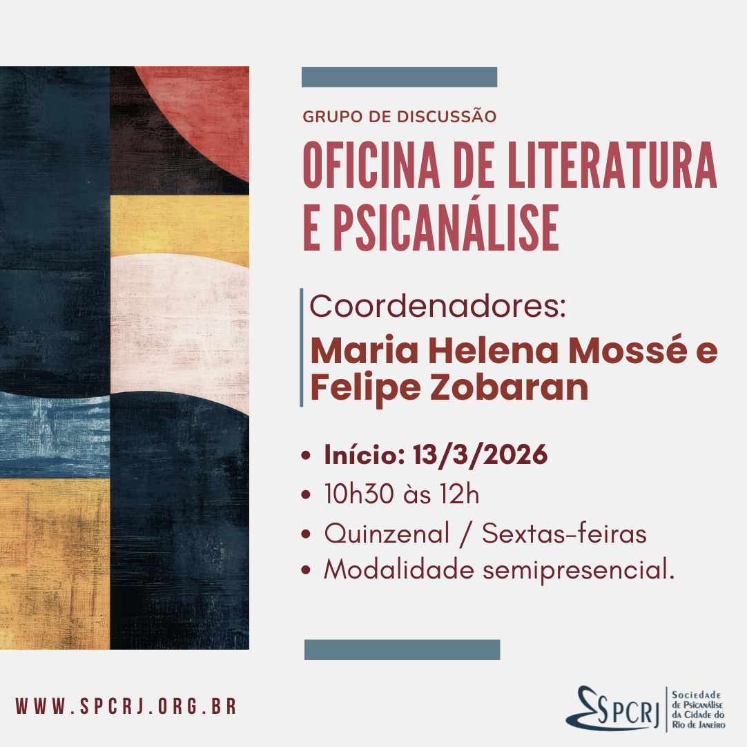 Coordenadores: Maria Helena Mossé, Psicanalista pela SPCRJ e escritora e Felipe Zobaran, Membro Associado da SPCRJ e jornalista